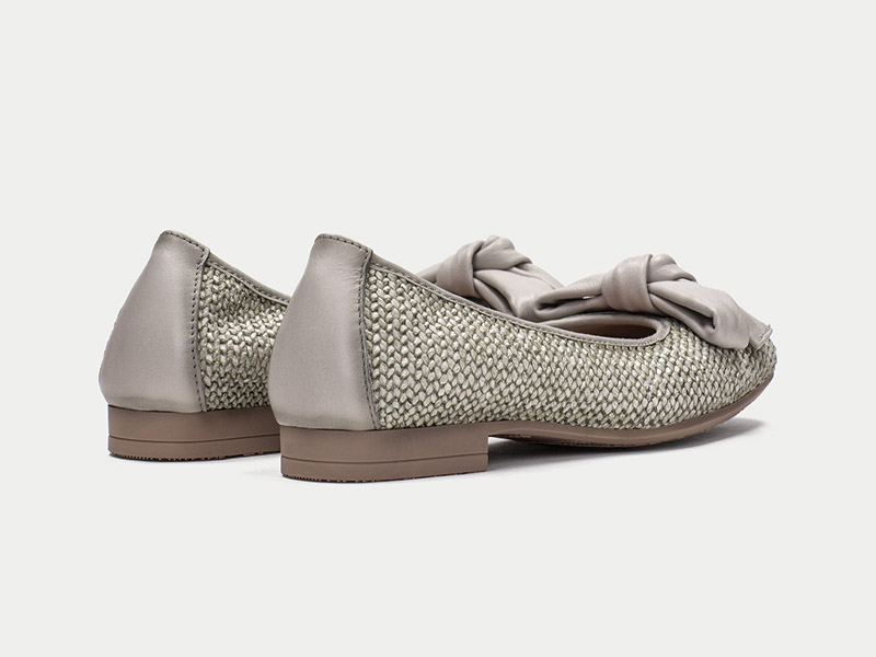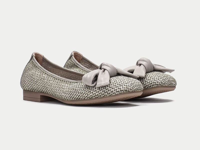 Bailarina en tejido acabado efecto rafia con detalles de piel. Tecnología Triflow que amortigua la pisada (Modelo: HV 221865)