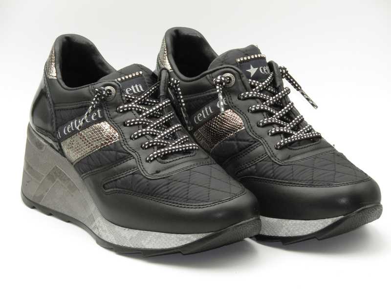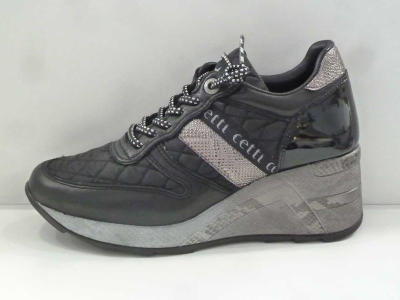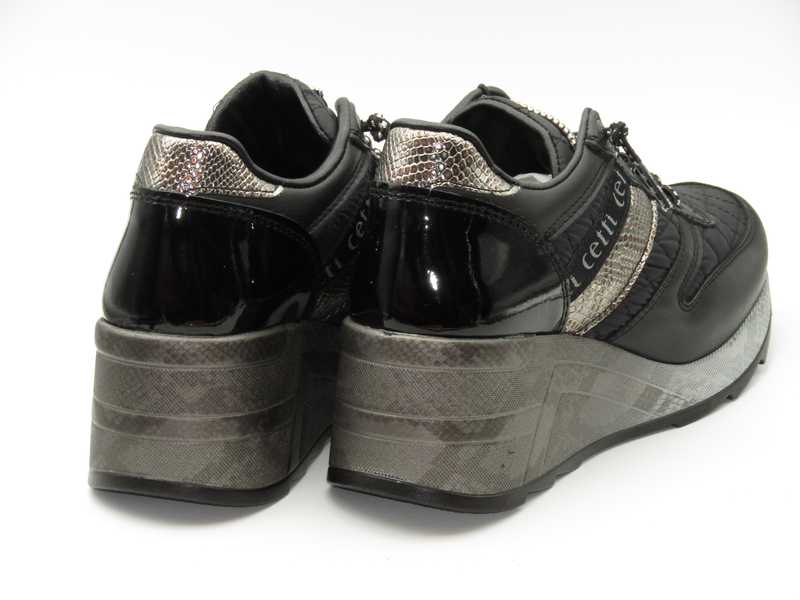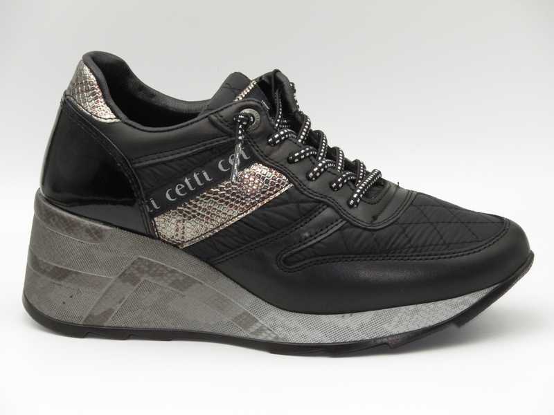 Deportivo con cuña media en piel y nylon combinado con charol y animal print (Modelo: C-1145)