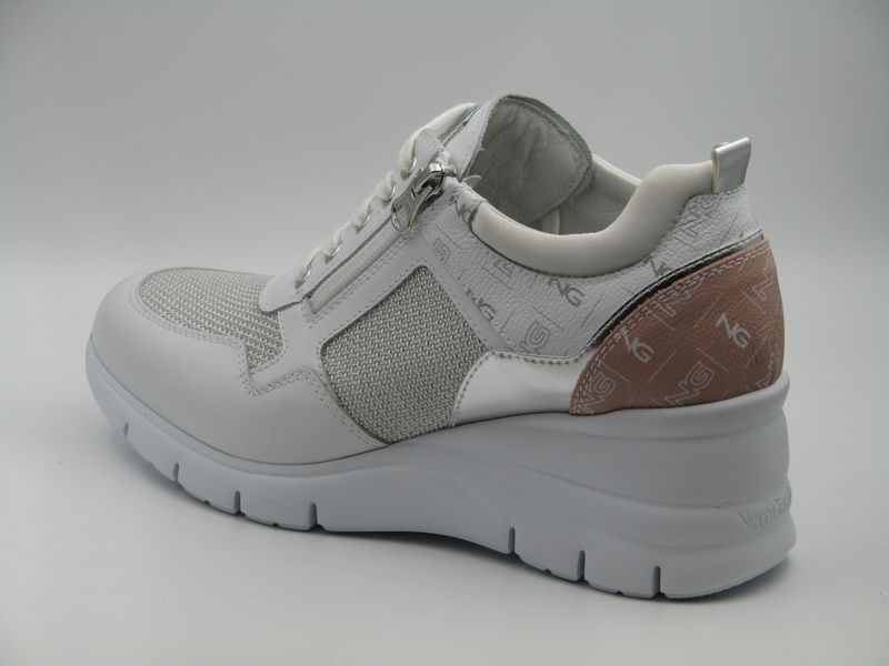 Deportivo con cuña fabricado en combinación de pieles y rejilla. Cremallera lateral sin necesidada de atar cordones (Modelo: E115134)