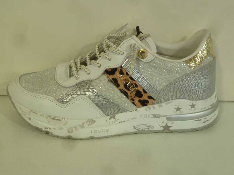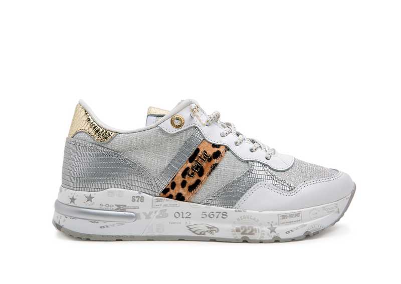 Deportivo fabricado en pieles combinadas ante, metálizado grabado y rejilla. Piso logos (Modelo: C-1274)