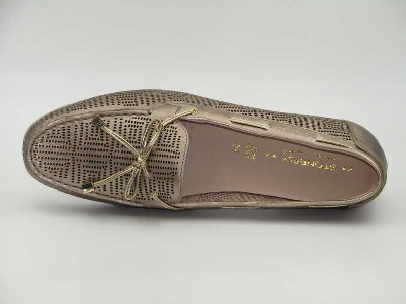 Mocasín en piel metalizada con plantilla extraible y piso con amortiguación Blusoft Stonefly (Modelo: 216017)