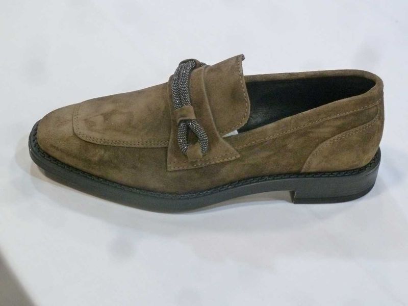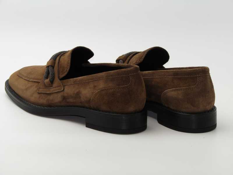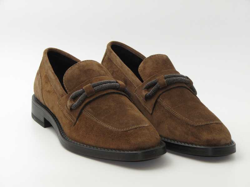 Mocasín en piel serraje con banda adorno cordón. (Modelo: 2571)