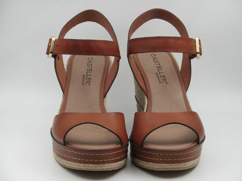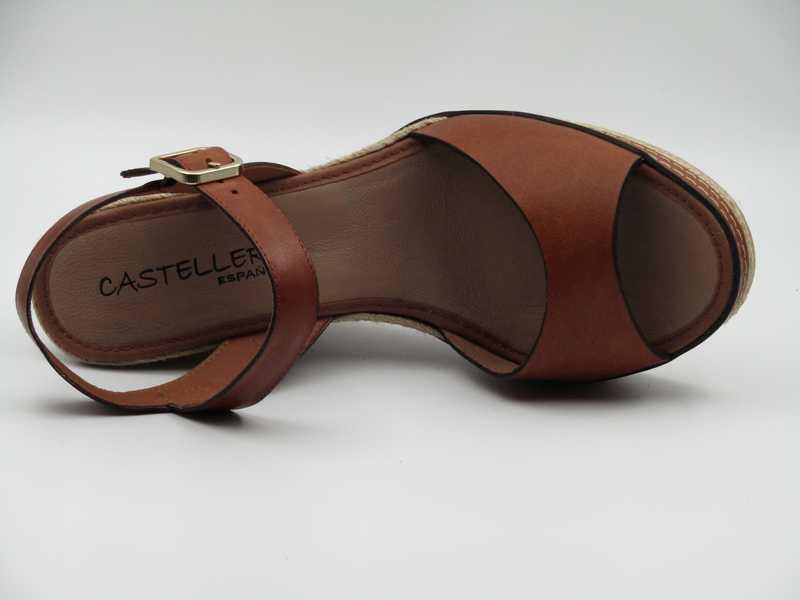Sandalia de piel fabricada en cuña de yute natural. Pulsera ajustable con cremallera. Cuña alta con plataforma (Modelo: 30-24-568)