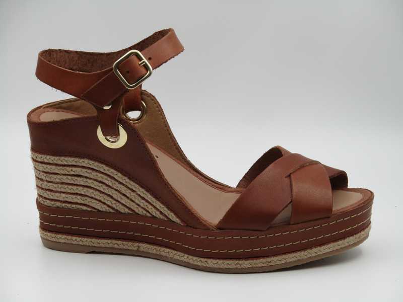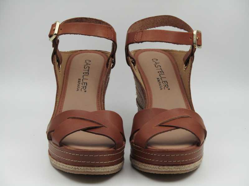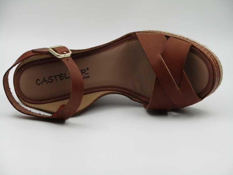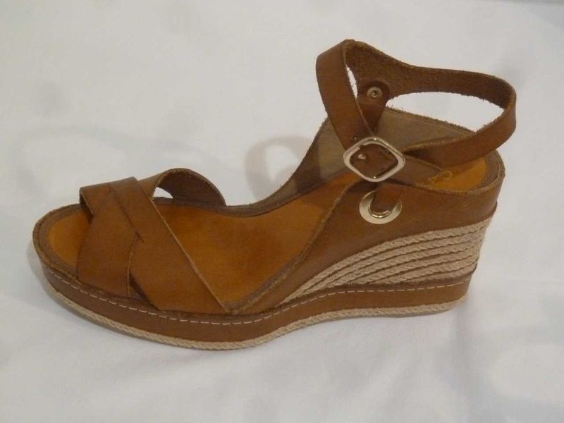 Sandalia en cuña de yute natural con pulsera y hebilla. Fabricada en piel. Cuña alta con plataforma (Modelo: 30-143-235)