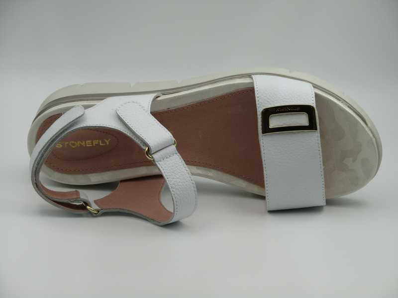 Sandalia en piel ajustable con tres velcros. Piso Blusoft Stonefly (Modelo: 217473)