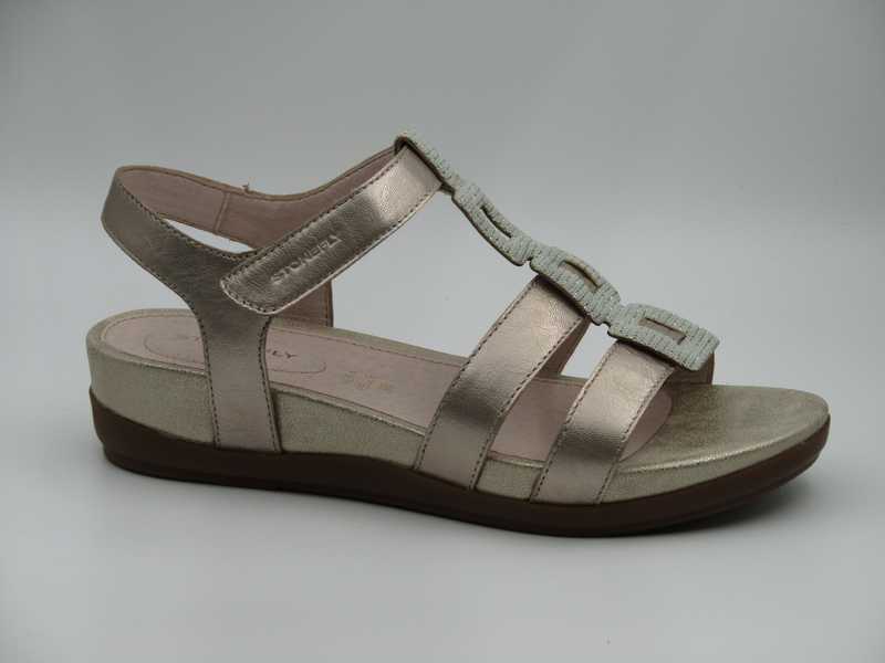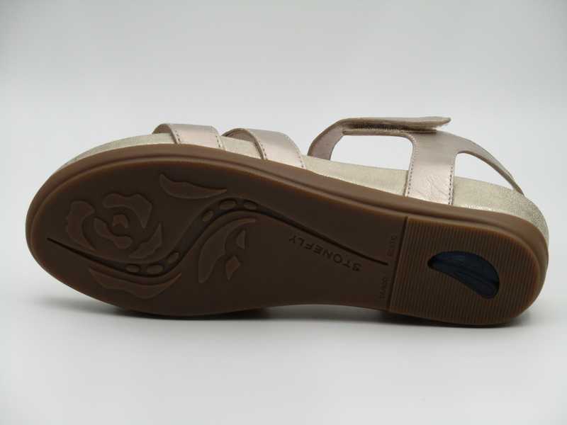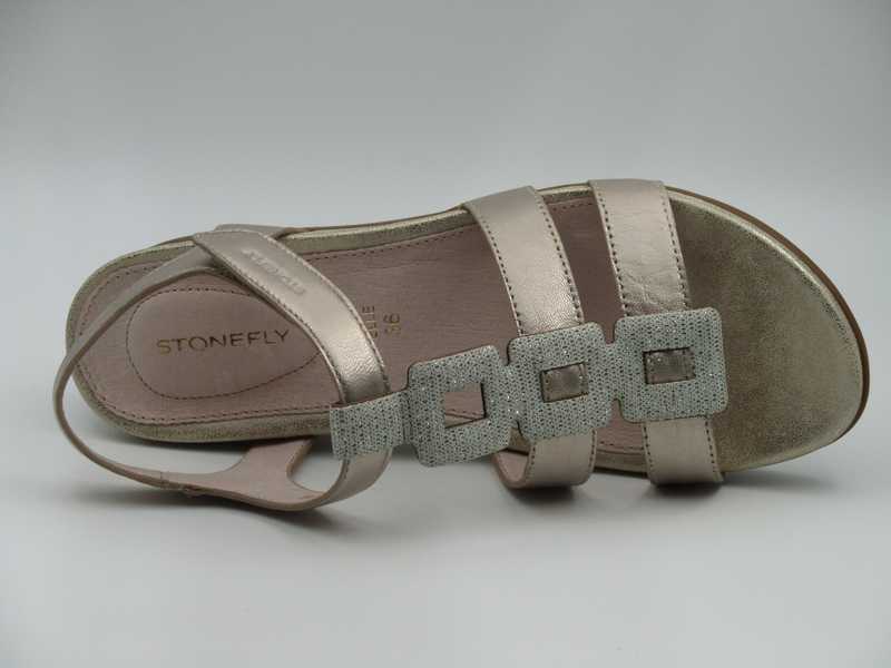 Sandalia en piel lisa y grabada. Ajuste con velcro. Piso Blusoft Stonefly (Modelo: 216081)
