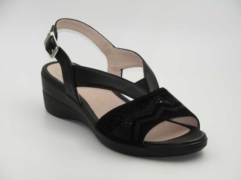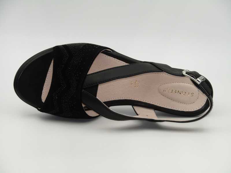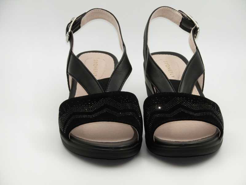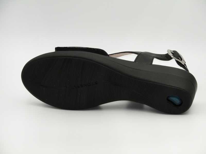 Sandalia en piel metalizada y ante con gran ajuste de empeine. Cuña media. Piso Blusoft Stonefly (Modelo: 217461)