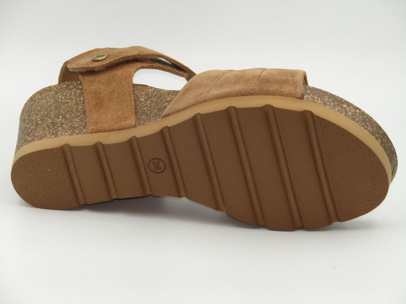 Sandalia con pulsera ajustable con velcro y pala ancha en piel serraje (Modelo: VALLEY)