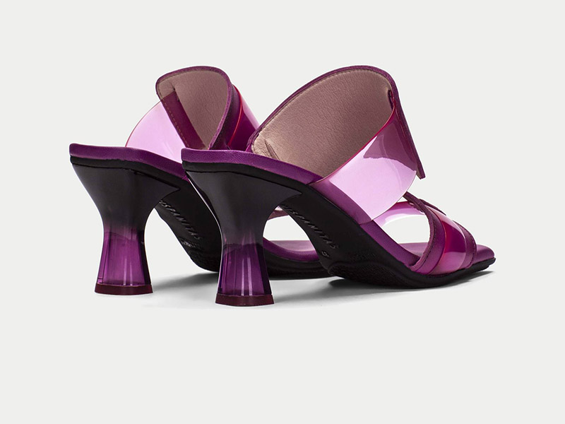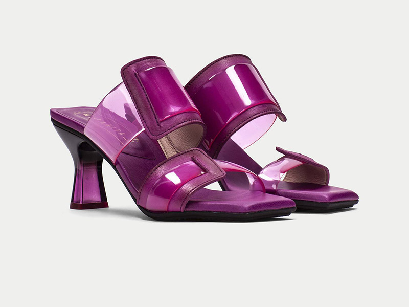 Sandalia destalonada en piel y vinilo.Tacón translúcido. Tecnología Triflow que amortigua la pisada. (Modelo: HV 221810)