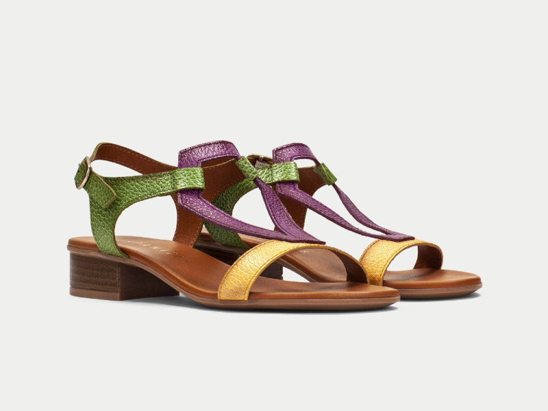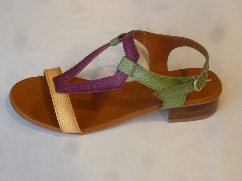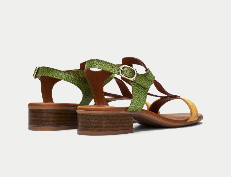 Sandalia combinada en colores de piel. Cierre con hebilla y tacón bajo (Modelo: CHV 221689)