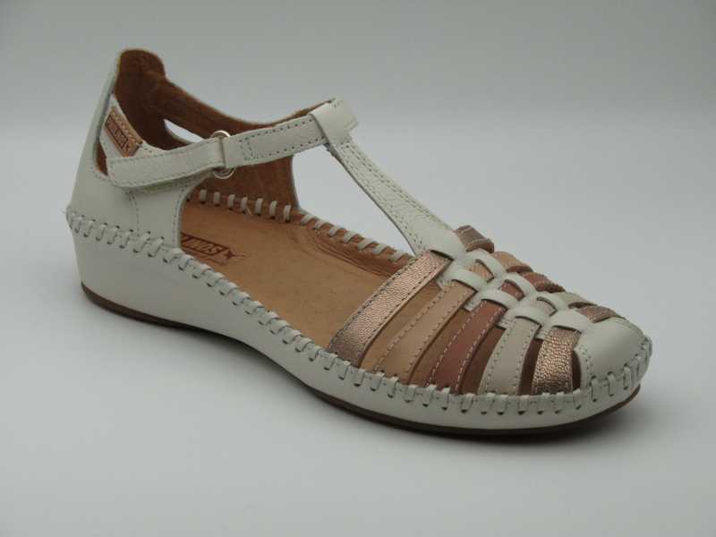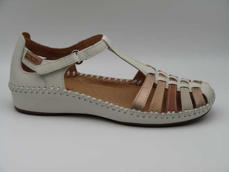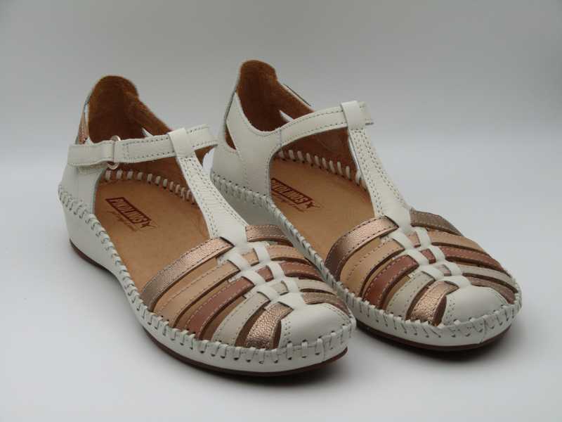 Sandalia cerrada de puntera con tiras de piel combinadas y plantilla acolchada (Modelo: 0843 C2)