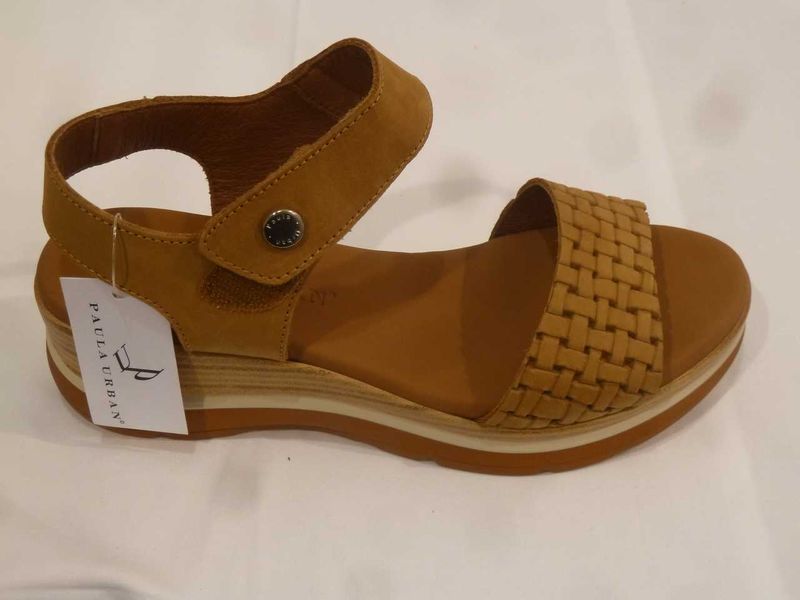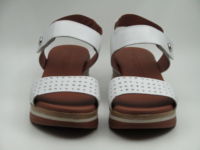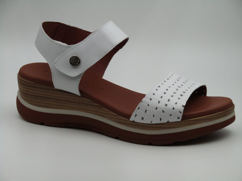 Sandalia con tira pala trenzada y pulsera en Nobuck liso.Planta acolchada con gel. Cuña media (Modelo: 2-468)