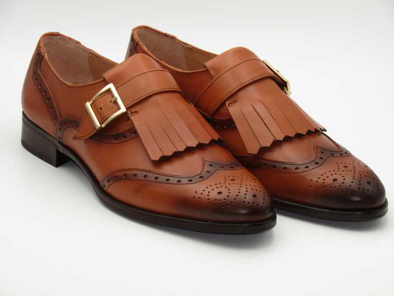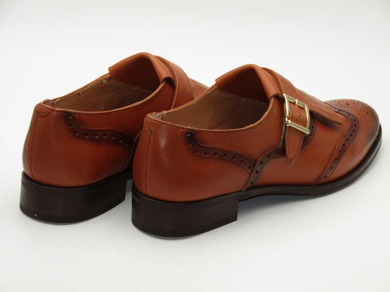 Zapato con flecos y hebilla.Puntera picada Pala Vega. Piso de goma (Modelo: 8328)
