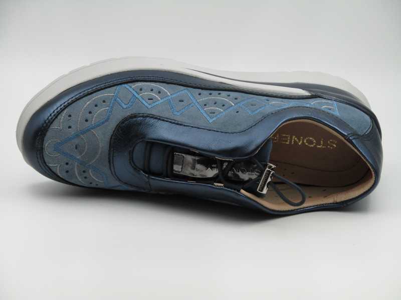 Zapato en ante y metalizado,cierre cordón y tope metálico. Plantilla extraible y piso Blusoft Stonefly (Modelo: 217296)