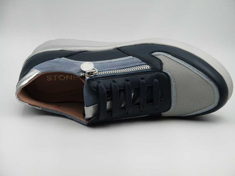 Zapato con cordones y cremallera en ante combinado y rejilla. Plantilla extraible y piso Blusoft Stonefly (Modelo: 217798)