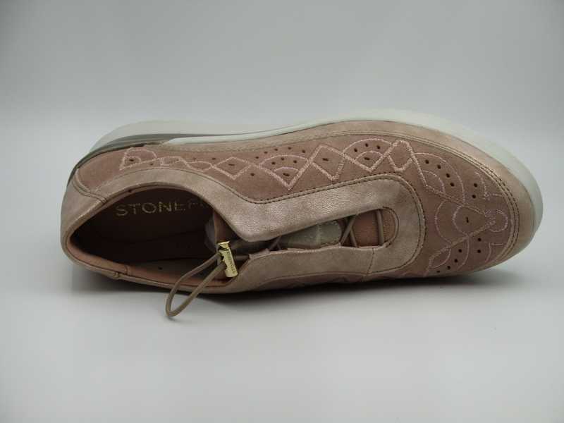 Zapato en ante y metalizado,cierre cordón y tope metálico. Plantilla extraible y piso Blusoft Stonefly (Modelo: 217295)