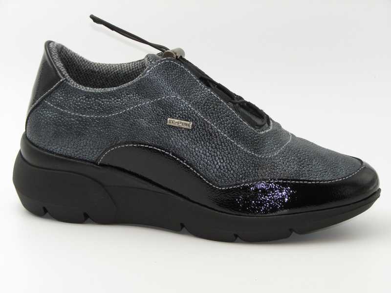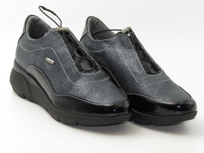 Zapato deportivo en charol y piel grabada. Ajuste con cordones elásticos. Membrana IMPERMEABLE (Modelo: 4681)
