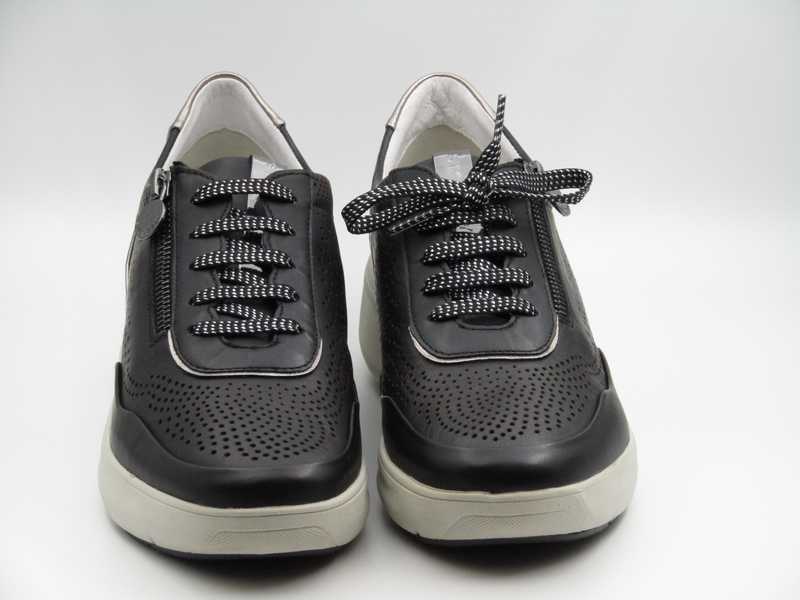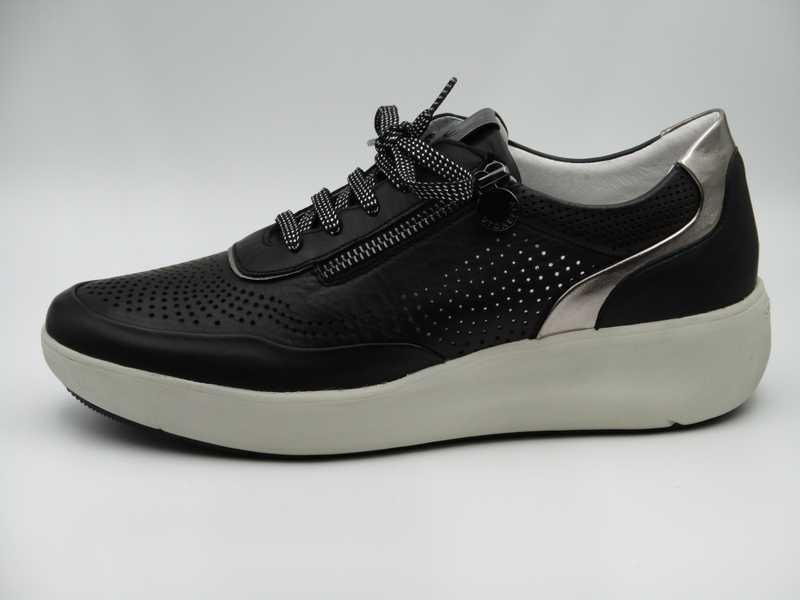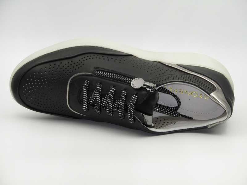 Zapato en piel y metalizado con cordones y cremallera. Piso con tecnología Blusoft Stonefly. Plantilla extraible (Modelo: 216092)