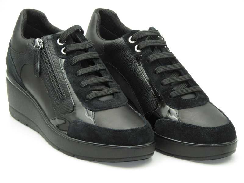 Zapato deportivo con cuña. Cordones y cremallera lateral operativa con llo que una vez ajustados los cordones no es necesario atar y desatar (Modelo: D-16RA-B)